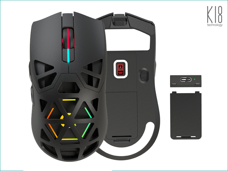 2.4Ghz+BT+Wired, Lightweigh gaming mouse with removable battery